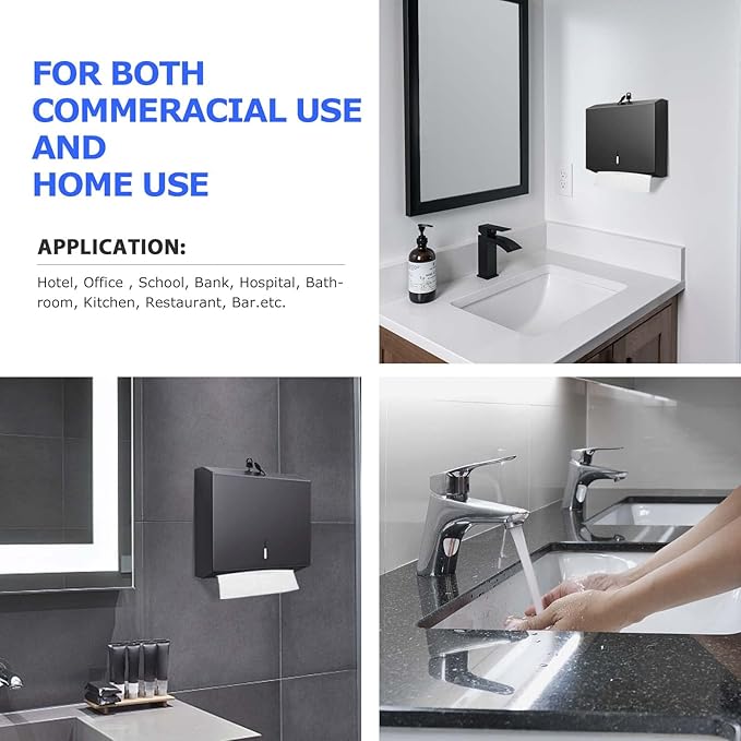 Paper Towel Dispenser Wall Mount Commercial, C Fold Multifold Hand Paper Towel Dispenser, Stainless Steel Tissue Holder (Matte Black)