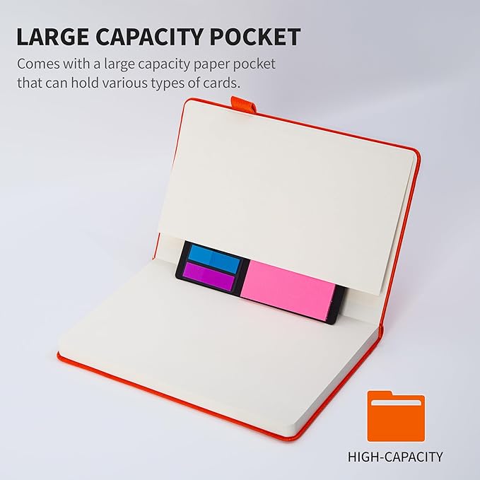 • 🌈【Multifunctional Accessories】⭐This classic 5.6" x 8" vegan leather journal features a durable and water-resistant cover, 160 college ruled lined pages, inner expandable pocket, pen holder, ribbon bookmark & elastic closure band