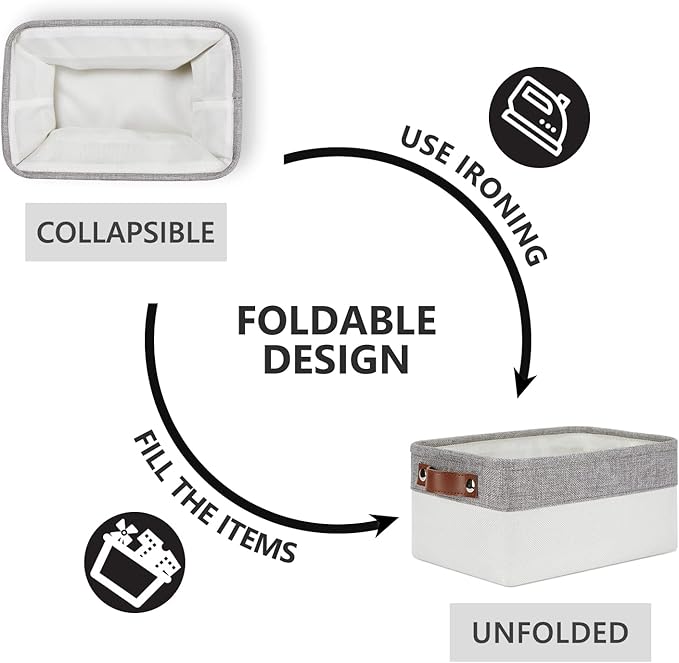 • 【Unique Design】Set of 6 small storage baskets, dimensions(each): 11.8(L) x 7.9(H) x 5.1(W) inches. Collapsible storage baskets bring you organizing convenience and a sweet home. Great for socks, underwear, books, magazines, toys, baby clothes, pet products, wipes, towels, decorations, office supplies, DVDs, and gifts.