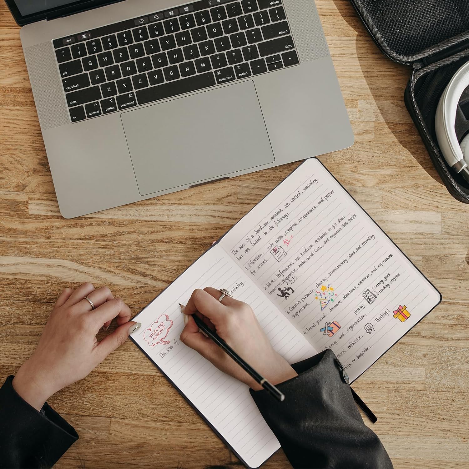 • 【Hardcover Journaling Notebook】Featuring soft-touch vegan leather cover for writing durability. Perfect for work, school, or home.