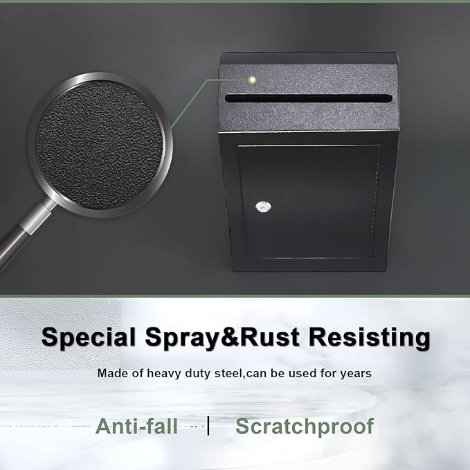 • 【DURABLE MATERIAL】- xydled’s Drop Box is made of powder-coated heavy-duty steel to ensure durability and long life, and provide high-security protection and safe storage for your mails. The black textured surface is not only scratch-resistant and modern as well as beautiful.