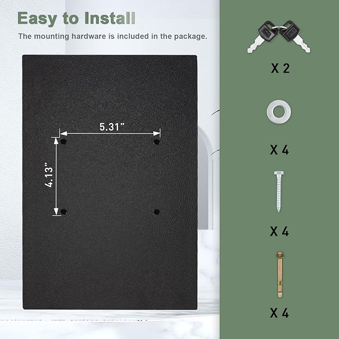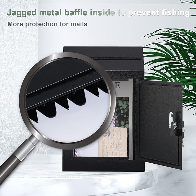 • 【SAFETY STORAGE】 - The mailbox is designed to prevent fishing with a jagged metal baffle inside. It comes with 2 keys and a secure latch that can keep your letters in a safe space.