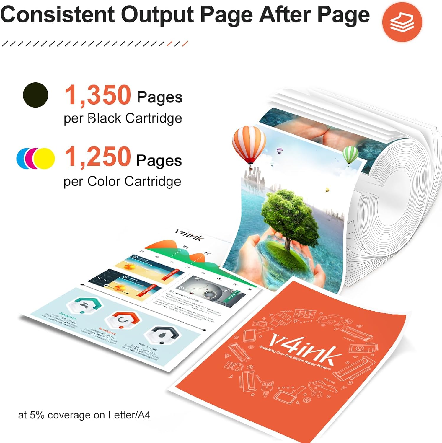 • Print more and cost less: 1,350 pages per Black cartridge and 1,250 pages per Cyan Yellow Magenta Cartridge at 5% coverage (Letter/A4).