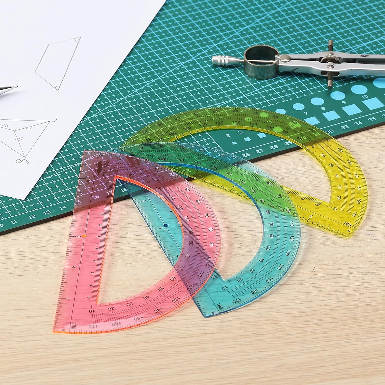 • Mr. Pen semicircular 6-inch protractors 180 degrees come in a 3-pack of assorted colors for an easy class set.