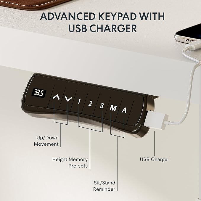 • Powerful Electric Motor - Enjoy a height range of 28.9" to 48.2" with the powerful dual motor and strong 2.7" wide legs using precise telescopic height adjustment. The easy-to-use push button controller features memory presets to save your preferred heights.