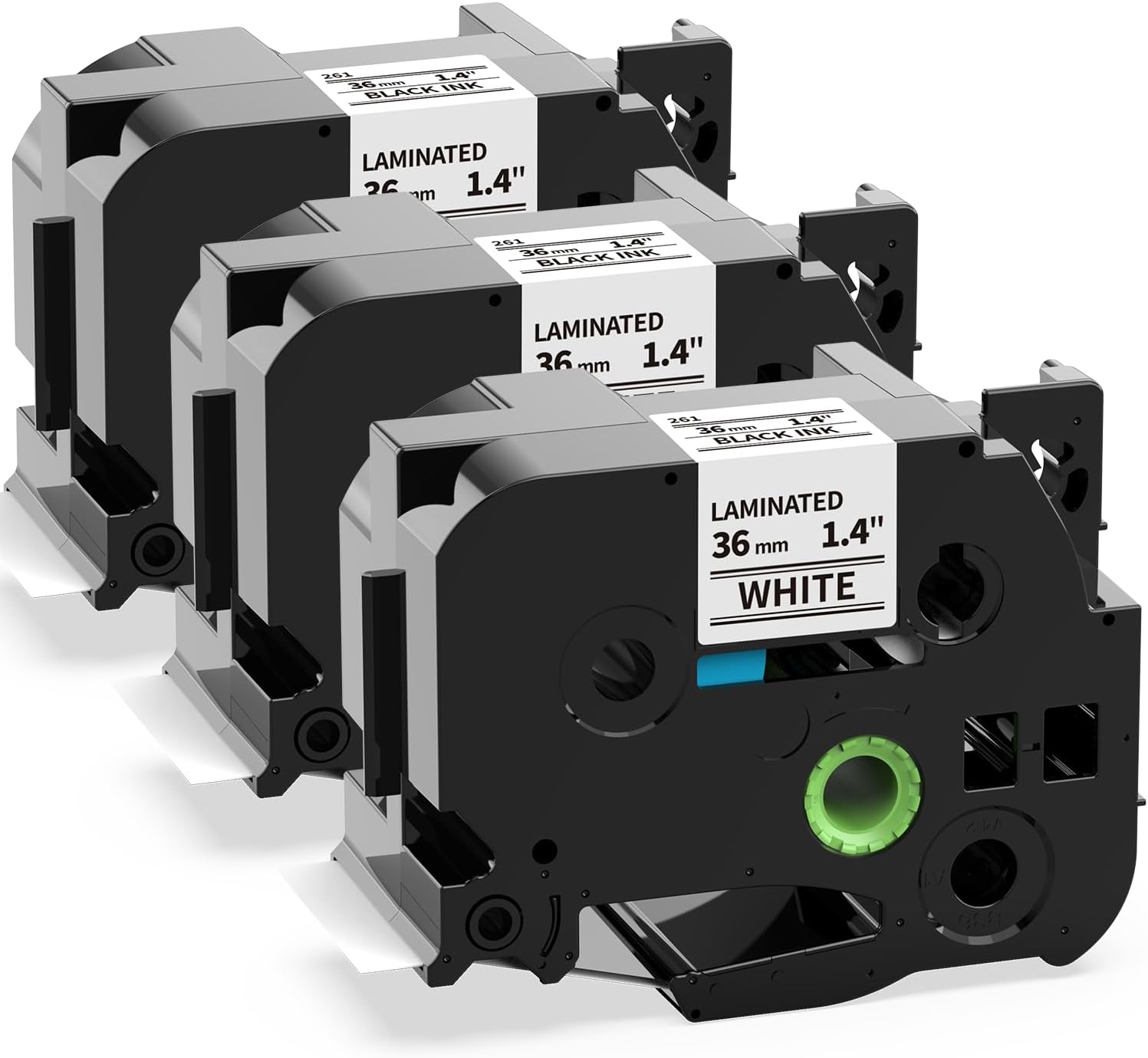 • 3-Pack compatible with brother p-touch label tape 36mm TZe-261 TZe261 TZ-261 TZ261 36mm tze tape. Color: Black on White. Width: 36mm (1 1/2") Length: 8m (26.2ft)