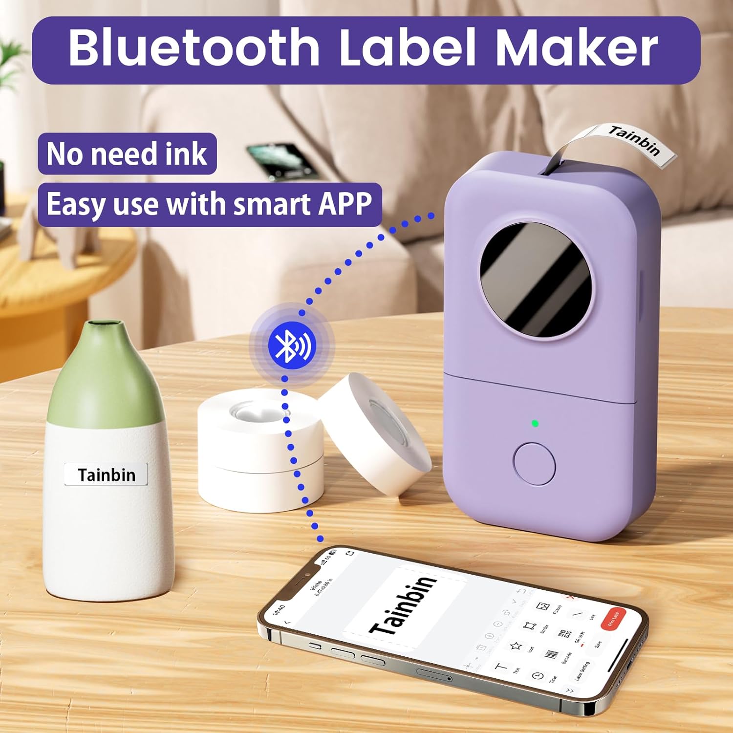 • Wireless & Portable - The mini-size, Bluetooth-connected Phomemo label printer offers convenient and fast printing from your mobile device. It has a built-in, durable rechargeable battery for extended use. The compact design allows it to easily slide into your pocket for portability