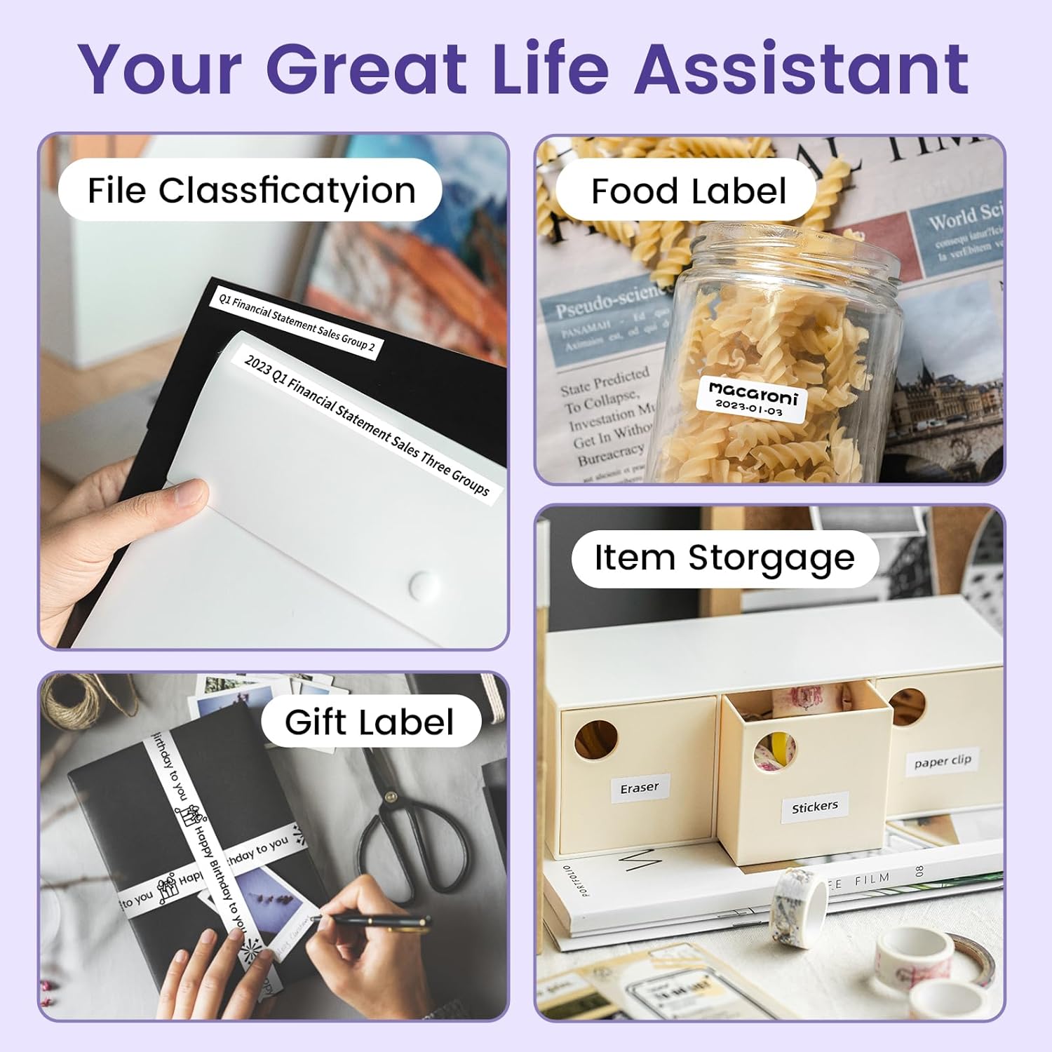 • Wide Application - The Phomemo D30 Sticker Printer is perfect for organizing home supplies (storage, food date marking, cosmetic classification, jar stickers), school supplies (name labels, study notes, office files), cable and personal item identification, and small business use (price tags, jewelry tags, and more)
