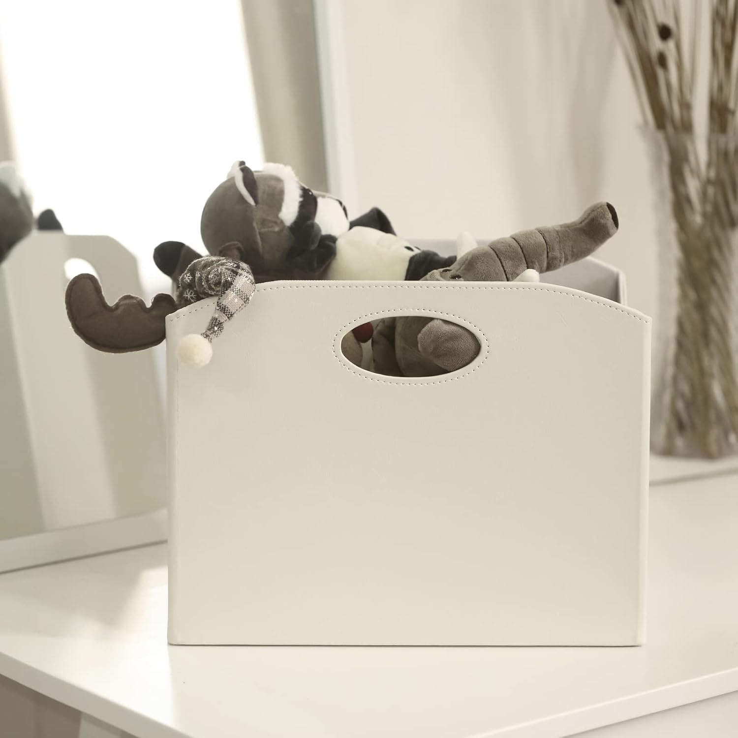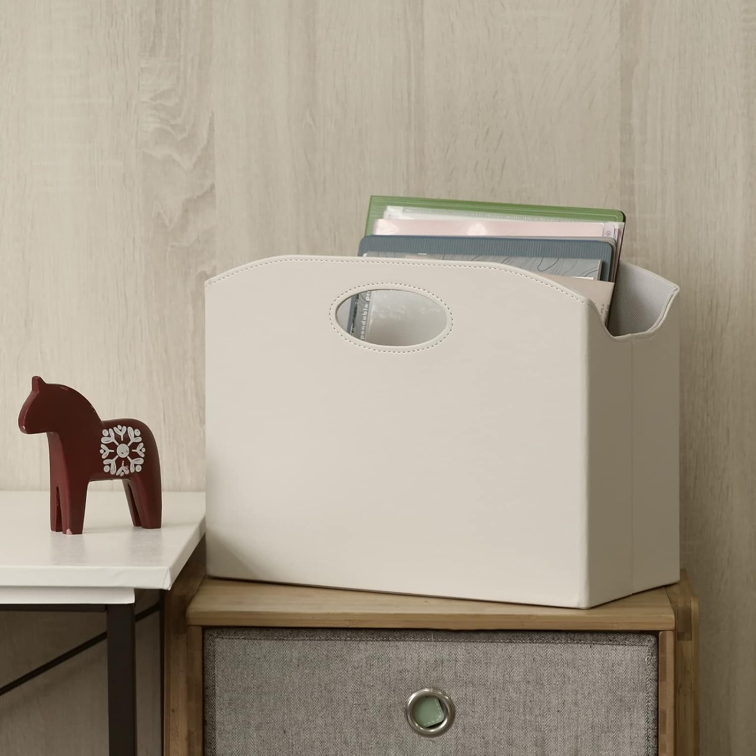 EZDeco Magazine Holder Foldable Magazine Rack Floor PU Leather File Holder Newspaper Book Storage Basket Document File Folder Organizer for Office Home (Off-white-1)