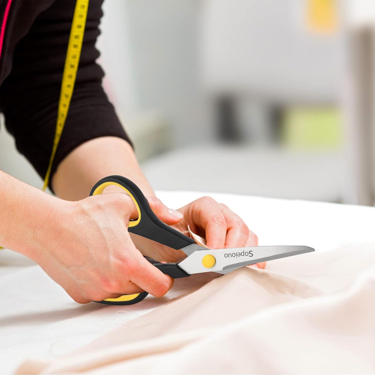 • Comfortable and Safety Scissors --Excellent ABS handle wrapped with semi-soft rubber at inner circle, can be used left- or right-handed. Great as office scissors, school scissors, sewing scissors, sharp scissors, craft scissors, fabric scissors, household scissors, garden scissors, craft shears, left handed scissors, older kids scissors, classroom scissors, students scissors, teachers scissors, scissors bulk