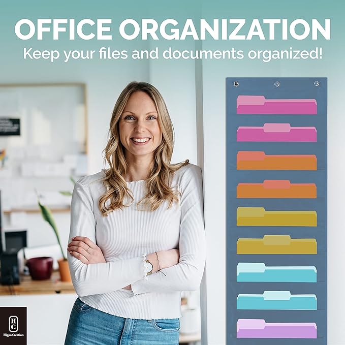 • Wall File Organizer: Our hanging file organizer has been thoughtfully designed for quick & easy access. Unlike other pocket charts, ours is made of thick, sturdy material (not flimsy) that stays flat against a wall or door.