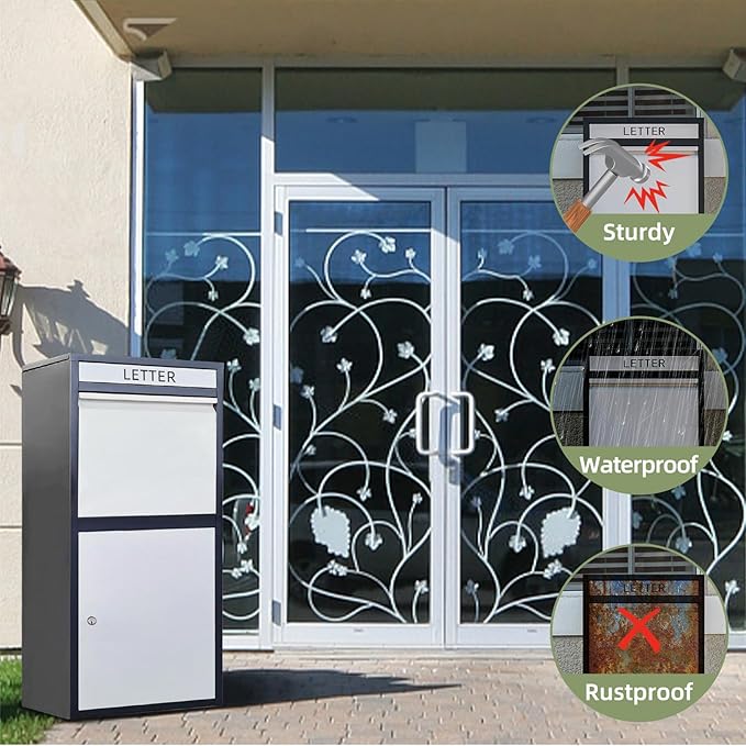 • Package Delivery Boxes for Outside, Extra Large Capacity Modern Mailbox, Outdoor Freestanding Porch Box for Packages