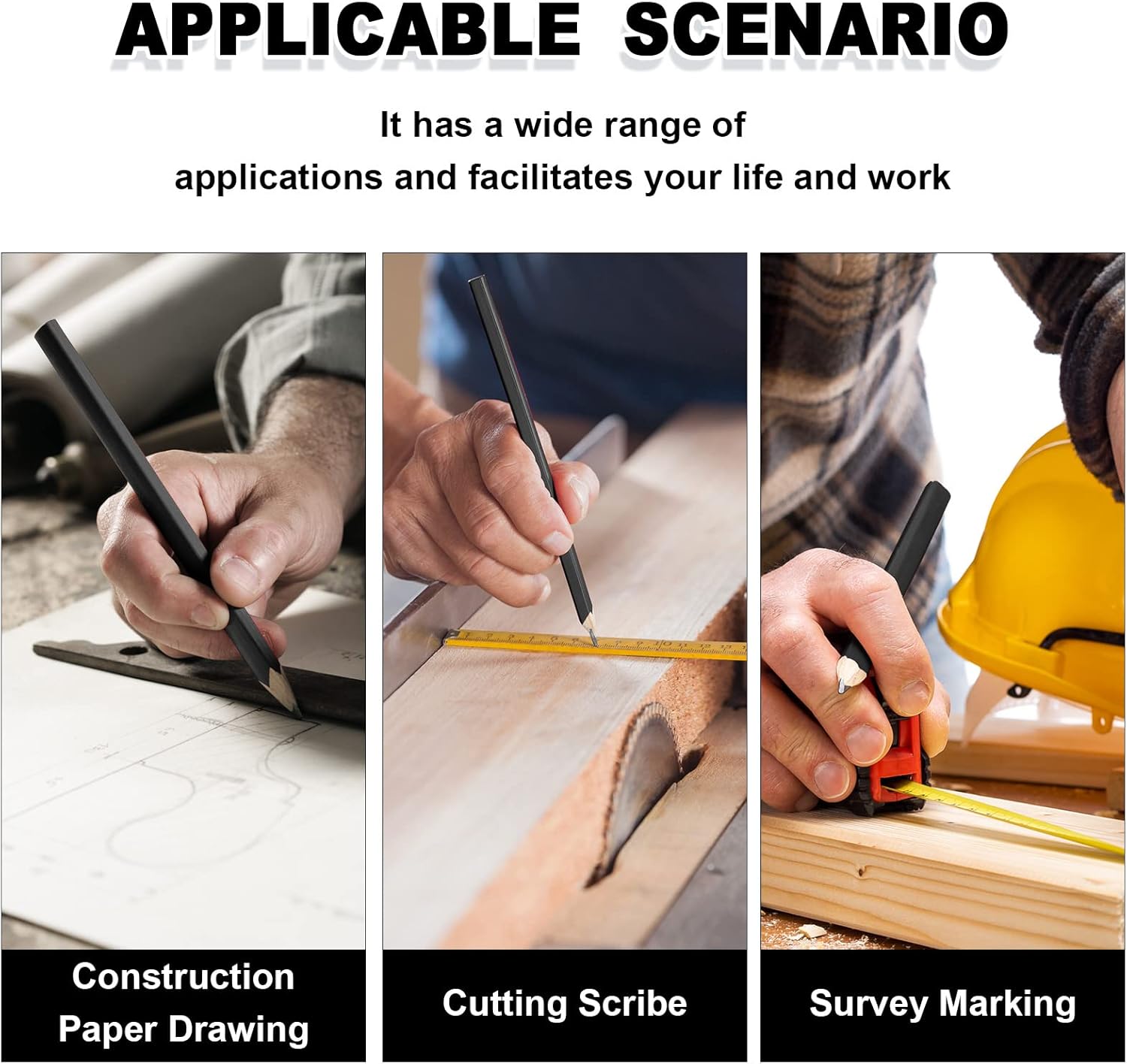 • Multipurpose: wood carpenters pencil can withstand the pressure of marking on hard, rough, and uneven surface materials, such as wood, plywood, cardboard, unprocessed wood, wood, paper, concrete, bricks, and so on