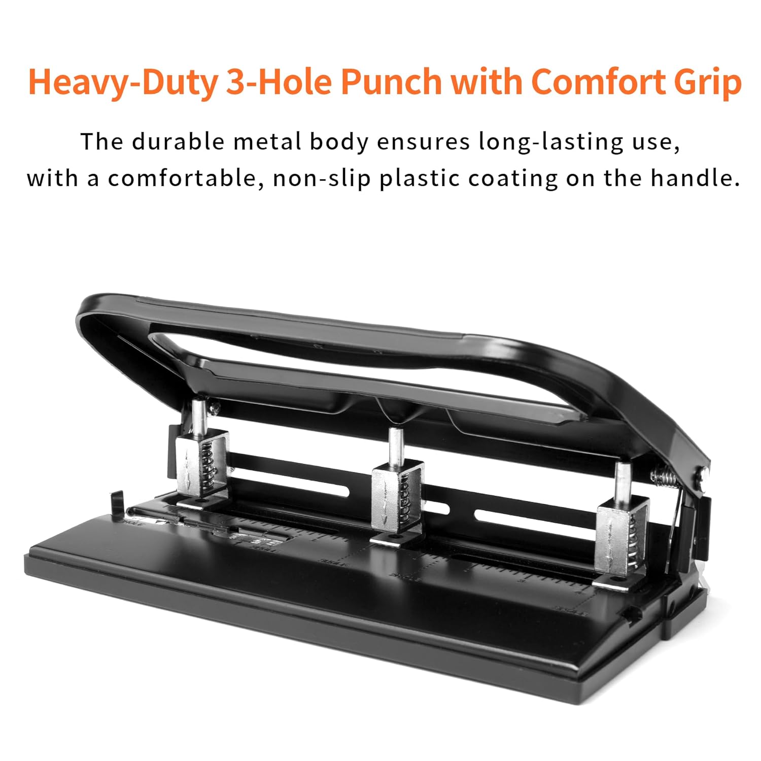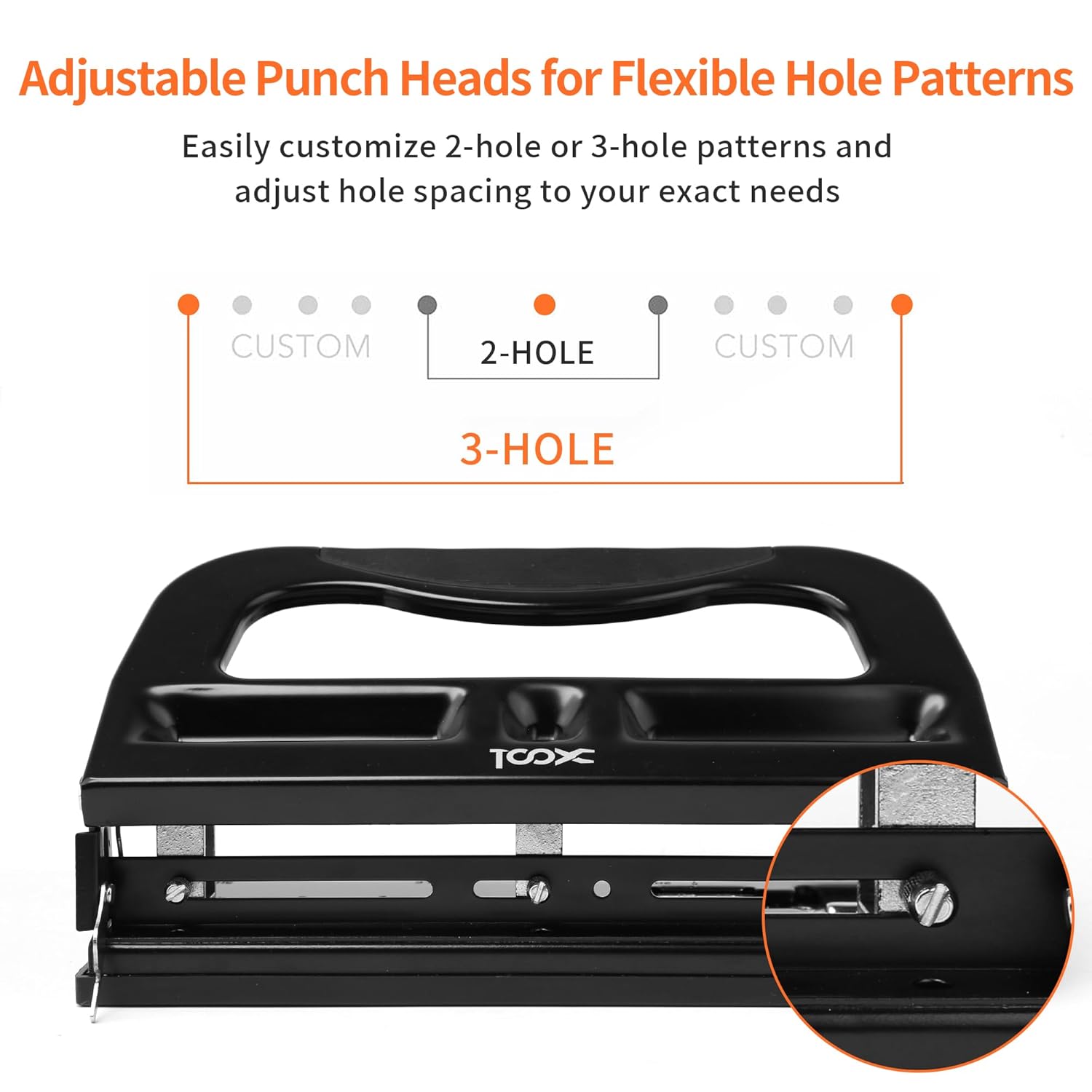 • Adjustable 2 or 3 Hole Punch: Easily switch between 2-hole and 3-hole settings with fully adjustable punch heads. Compatible with A4, US Letter, and various binder types—ideal for school, office, and home use.