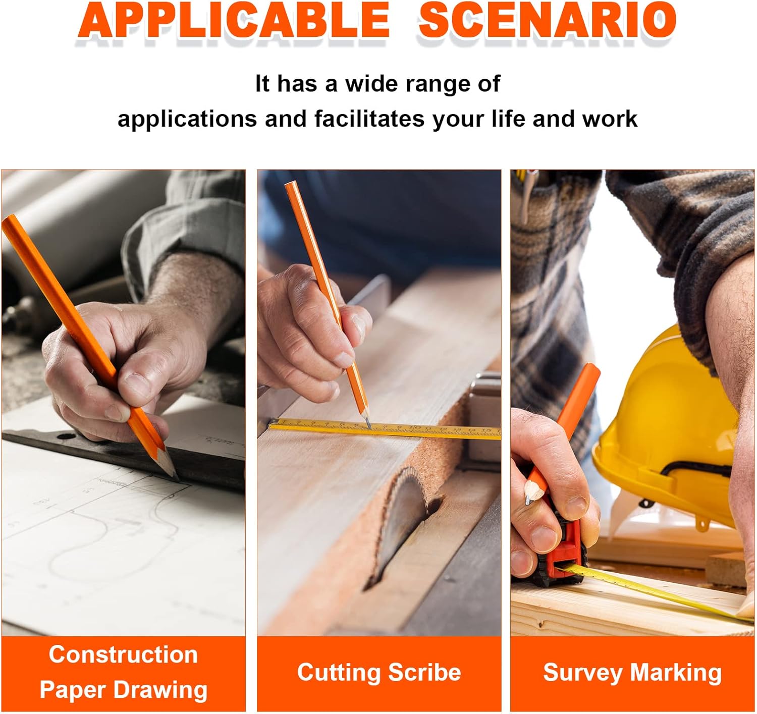 • Multipurpose: wood carpenters pencil can withstand the pressure of marking on hard, rough, and uneven surface materials, such as wood, plywood, cardboard, unprocessed wood, wood, paper, concrete, bricks, and so on