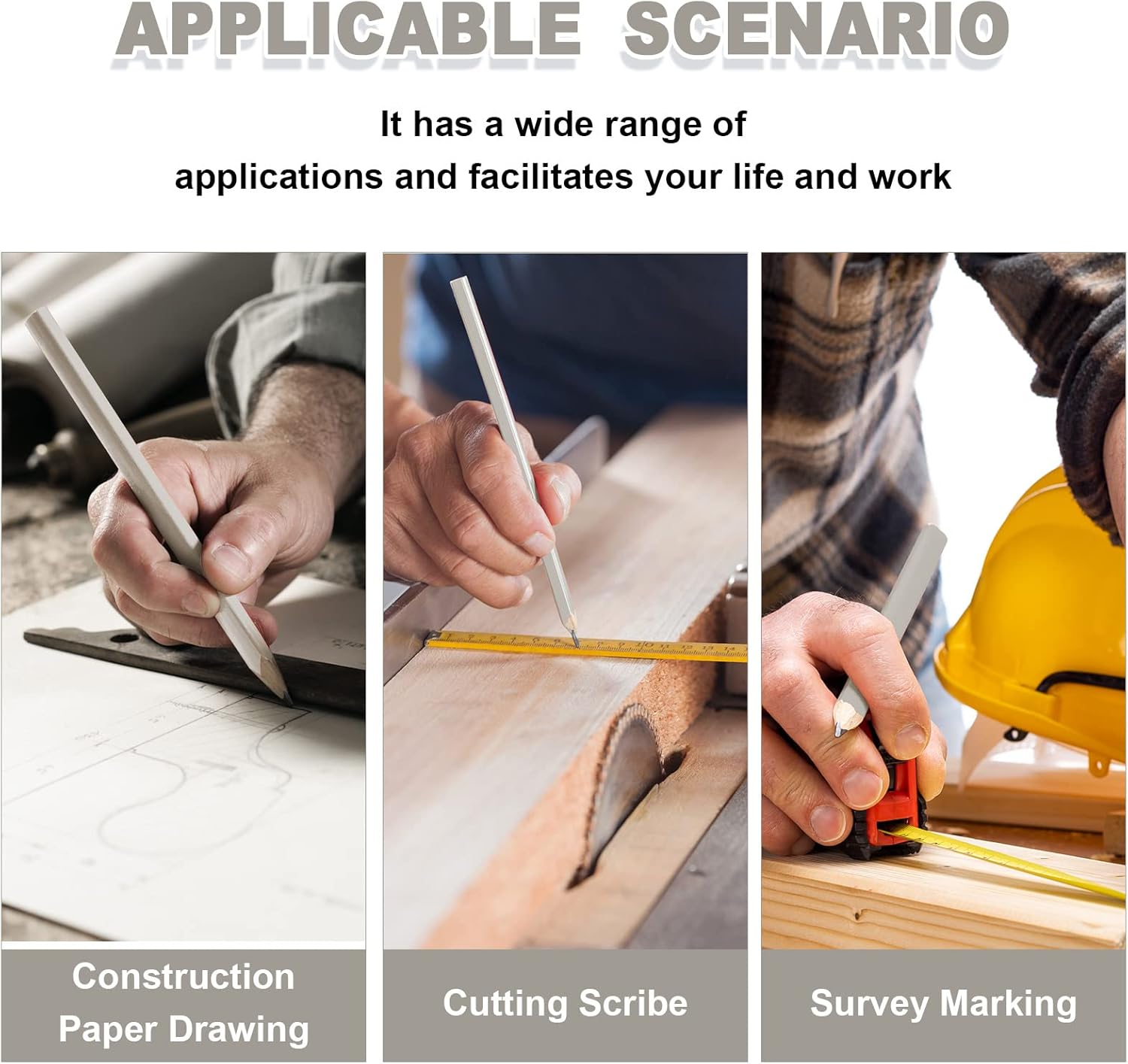 • Multipurpose: wood carpenters pencil can withstand the pressure of marking on hard, rough, and uneven surface materials, such as wood, plywood, cardboard, unprocessed wood, wood, paper, concrete, bricks, and so on