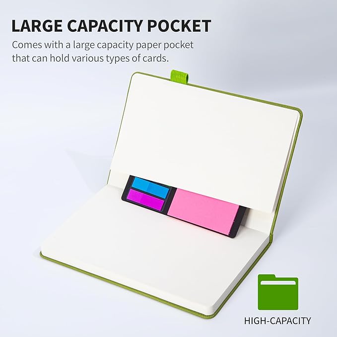 • 🌈【Multifunctional Accessories】⭐This classic 5.6" x 8" vegan leather journal features a durable and water-resistant cover, 160 college ruled lined pages, inner expandable pocket, pen holder, ribbon bookmark & elastic closure band