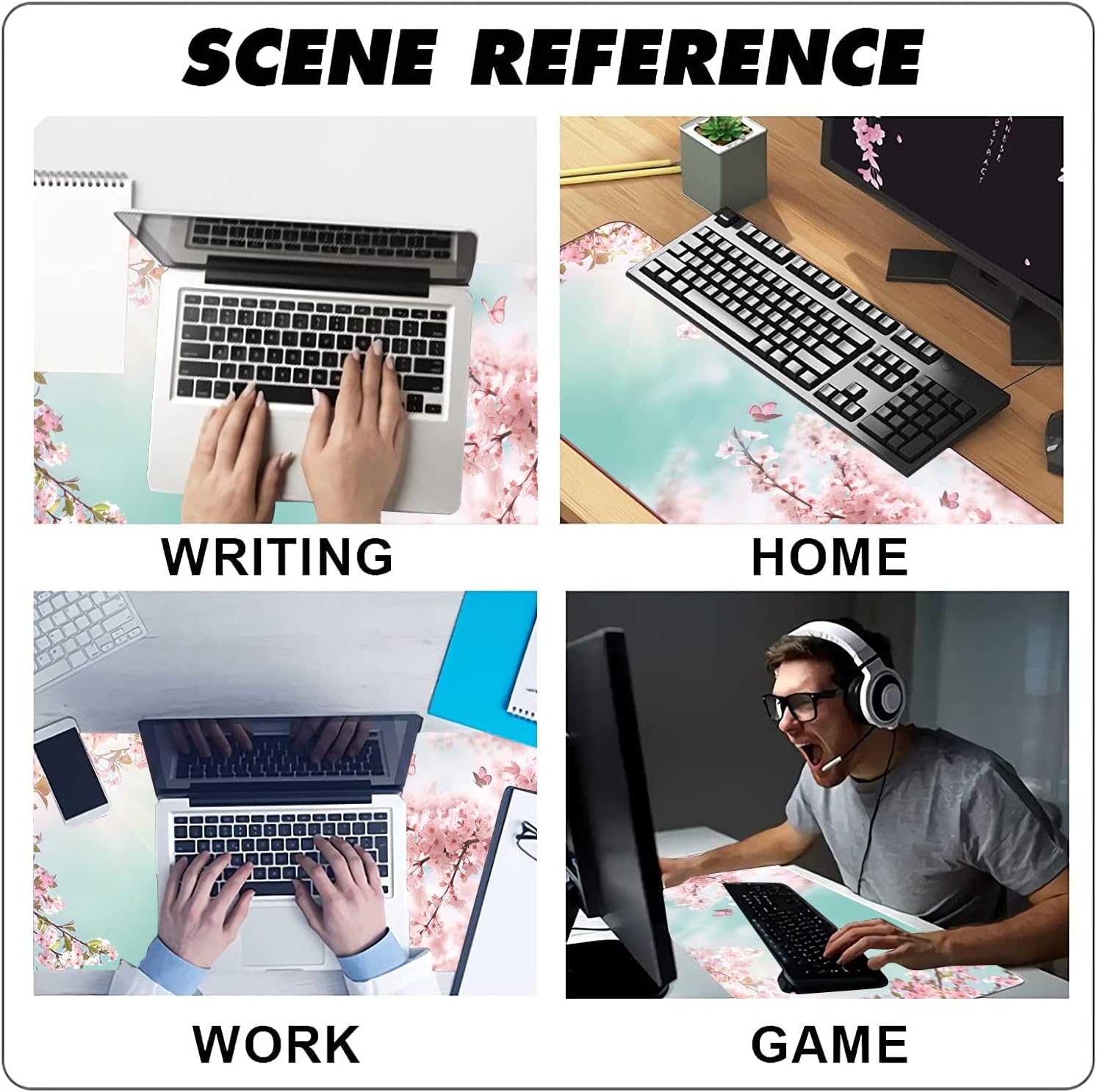 Extended Large Gaming Mouse Pad Dreamy Romantic Pink Sakura Butterflies XXL Size Keyboard Mouse Mat Desk Pad with Non Slip Rubber Base Stitched Edges Office Decor for Women Girls Men,35.4 x 15.7inch