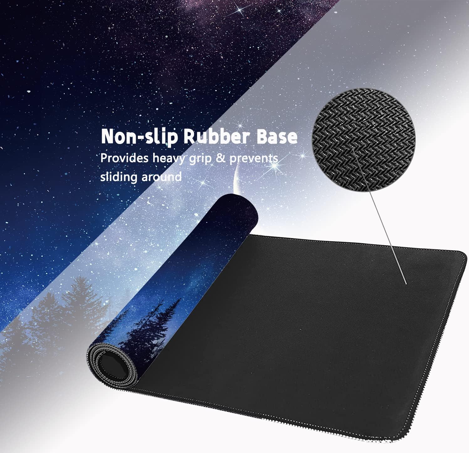 Extended Large Gaming Mouse Pad Starry Sky in The Forest XXL Size Keyboard Mouse Mat Desk Pad with Non Slip Rubber Base Stitched Edges Office Decor for Women Girls Men,35.4 x 15.7inch