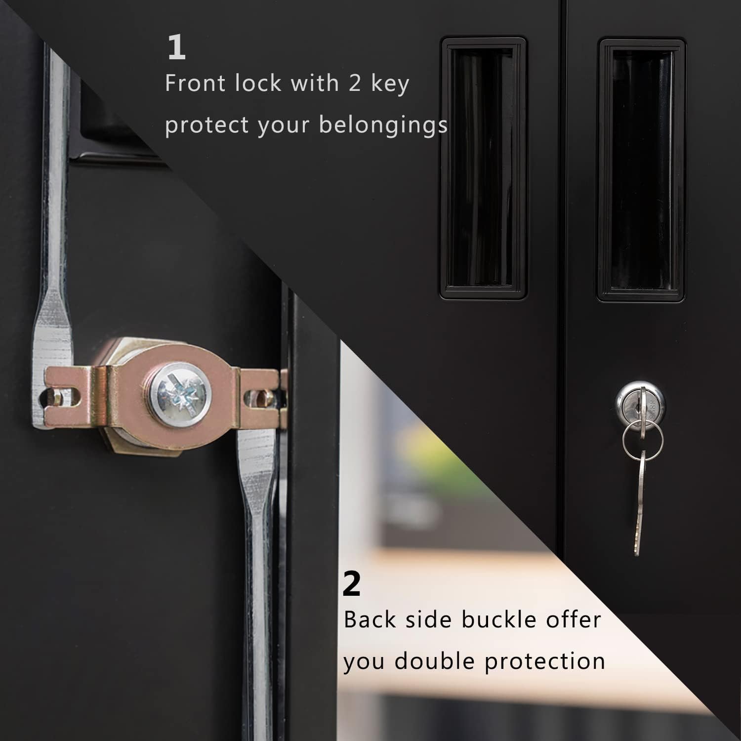 • Material and Design: Unlike other metal cabinet that are made of 3mm thick steel, our metal lockers are made of 5mm thick steel, providing you with security and durability. Additional top locker design gives you a different feeling