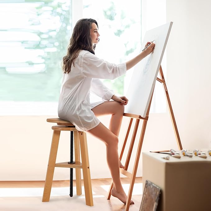 • [Craft in Comfort] The maximum load-bearing capacity of the painting stool is 176 lbs (80kg). Our adjustable height wooden stool is perfect for artists, adults, and anyone who wants to create in comfort. With a swiveling seat that adjusts from 19" to 26", you can customize the height to fit your needs and work surface.