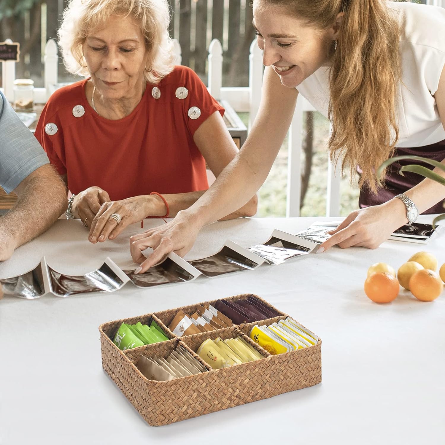 Tea Bag/Sugar Packet Holder, Coffee Station Condiment Organizer, Seagrass Storage Basket, Wicker Rattan Divided Basket Organizer for Drawer/Shelf/Countertop