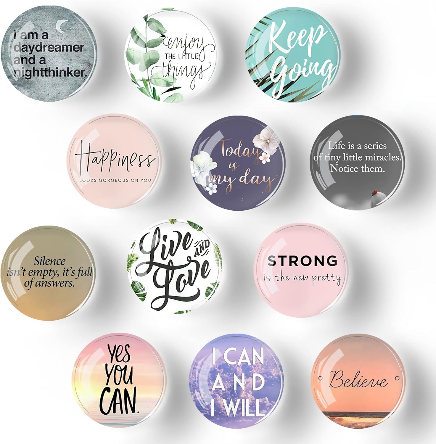12Pcs Glass Strong Magnetic Refrigerator Magnet Fridge Sticker,Motivational Fridge Magnets Decoration for Crafts,Strong Fridge Magnets for Kitchen, School,Office Whiteboard, Cabinet and Dishwasher