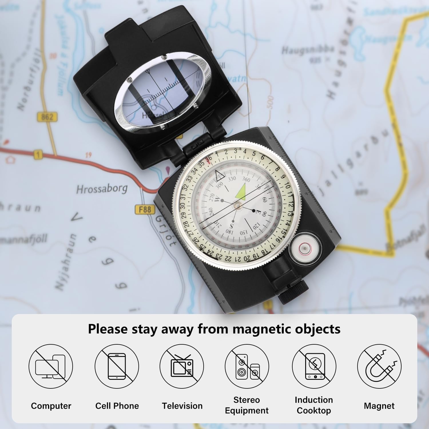 • The Awesome Gift-Professional military compass is stable and fearless in harsh environments, suitable for driving, boating, camping, hiking, exploring, hunting and so on outdoor activities, a great gift for kids, scouts, backpackers and women!