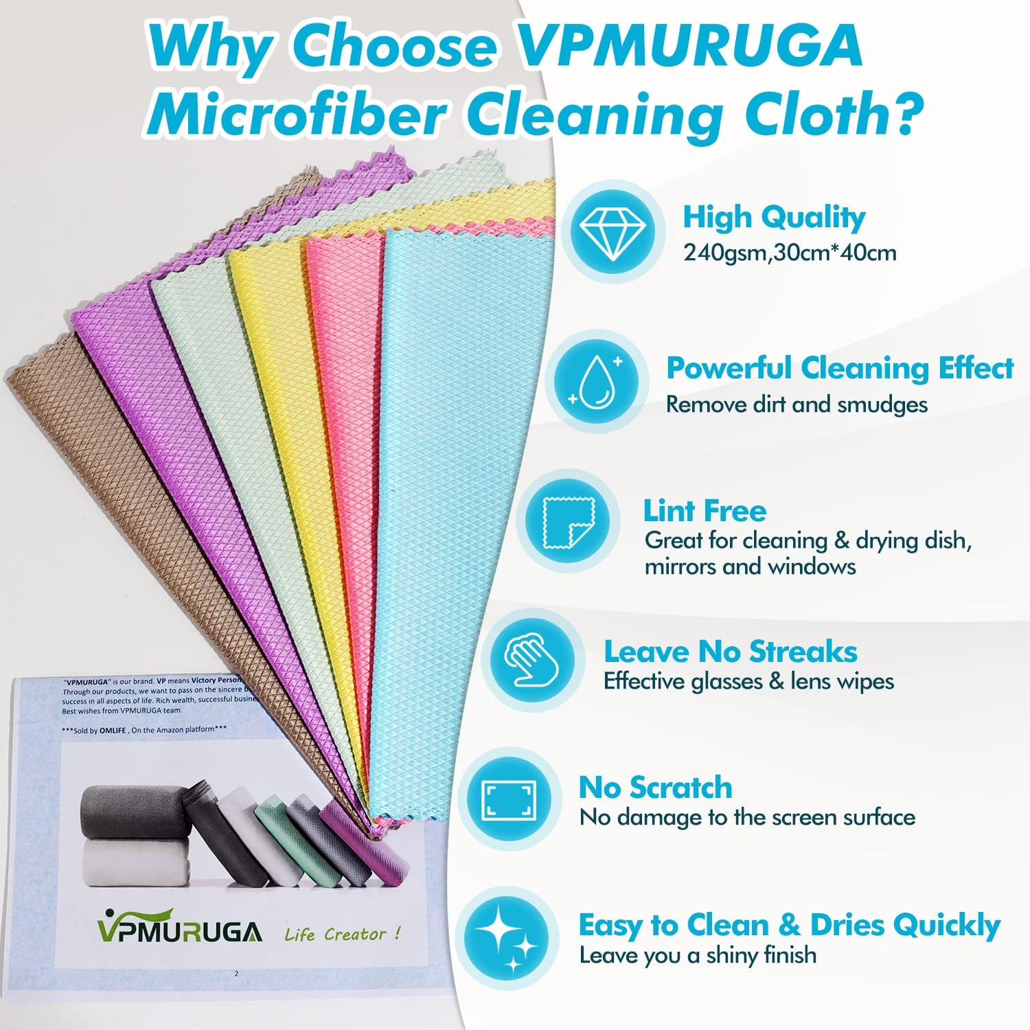 • VPMURUGA Cutting Edge fish scale Microfiber cleaning cloths are Nanoscale Dish rag Streak-free lint-free.Perfect for wiping down any surface,they are ideal for kitchen, bathroom shower door. Can pick up spills and splashes like magic. Our microfiber cloth are best for cleaning drying dishes,glass quartz counter top & polishing glass,glassware,eyeglass,lens,window,mirror,screen,computer,PC TV screen.Unique fish scale wave can catch dirt dust easily remove smudges water spots fingerprints fast.