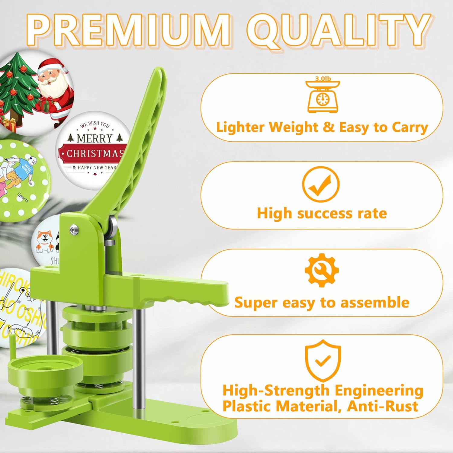 • ⚙️【Well Made & Durable】Our button press machine is made of high-strength engineering plastic, which has good mechanical properties, light weight, easy to carry, simple operation and anti-rust.