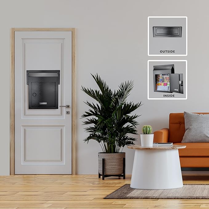 • RAINPROOF DESIGN: Keep your items dry and protected with our rainproof lock mailbox for doors! The extended hood on the mail slot ensures that you will not have to deal with wet and ruined mail ever again.