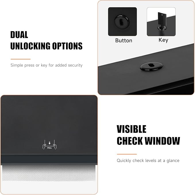 • 200-Sheet Capacity – Holds up to 200 multi-fold/tri-fold paper towels (within 3.1” width when folded), reducing refill frequency and saving time and effort