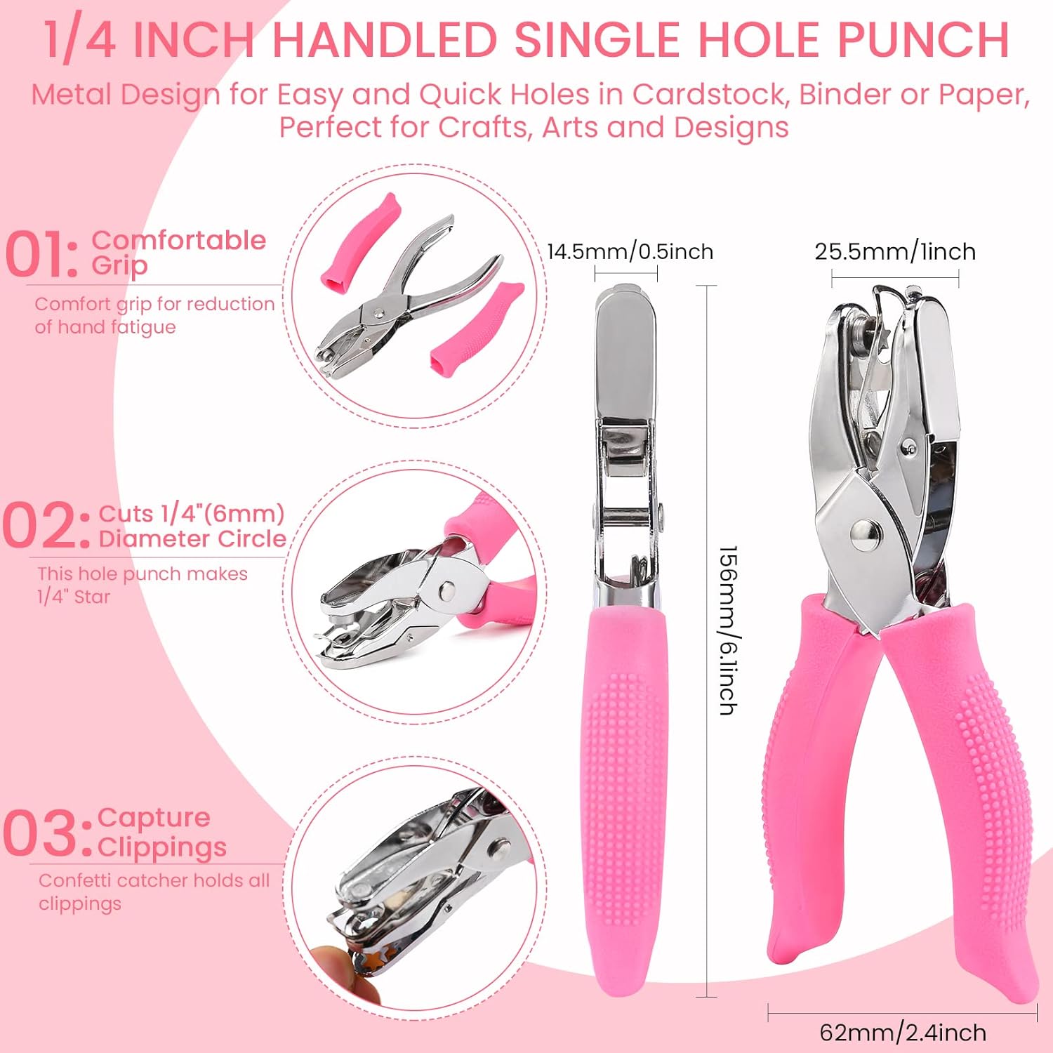 • DURABLE METAL CONSTRUCTION: Handheld single hole punch is made with all-metal construction and features an anti-slip soft rubber grip. The hole puncher is ergonomically designed with cushioned grips which are more comfortable for frequent use. Punches 1/4 in star shaped holes in paper, thin plastic, foam, cardstock, etc.