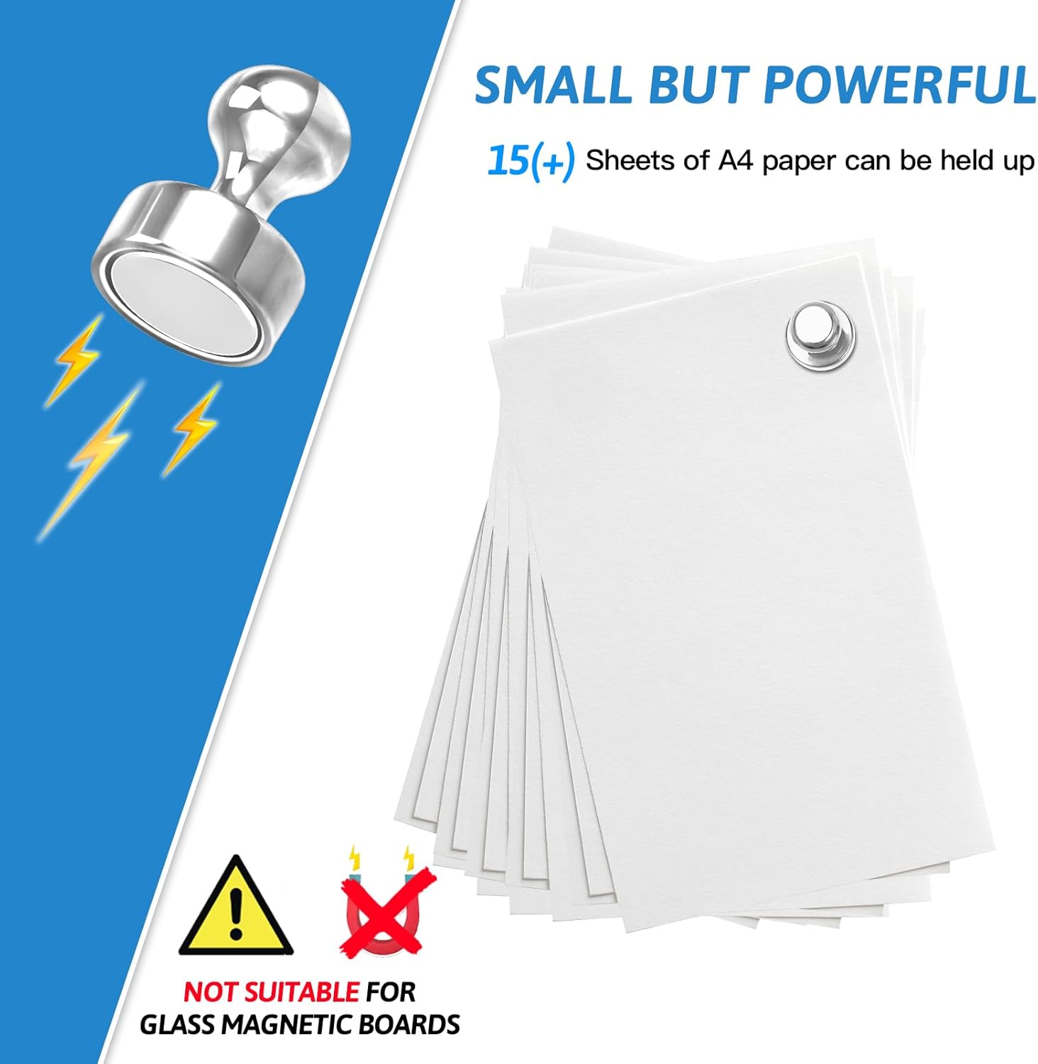 • 【Best Organiser】With these magnetic push pins, everything will become tidy and orderly. Perfect for holding paper, posters, cards, photos, school paperwork, kids' artwork, note list, or potty training charts sliding on whiteboards, fridges, bulletin boards, magnetic maps, calendars, lockers, file cabinets, and other magnetic surfaces.