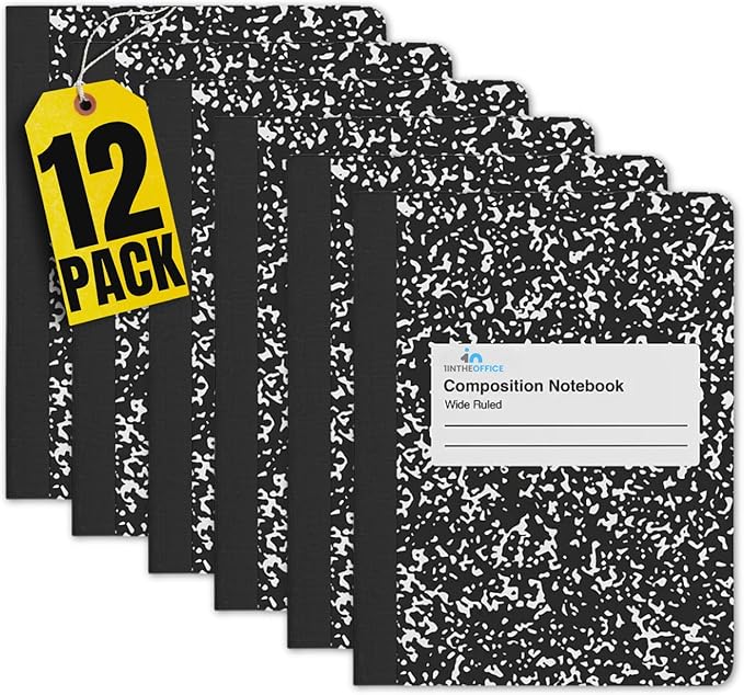 1InTheOffice Marble Composition Notebook, Wide Ruled Composition Notebook, 9.75" x 7.5", Black Marble Cover, 100 Sheets/Pack (12)
