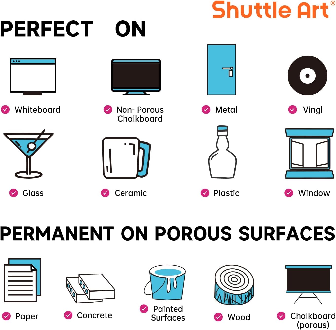 • KIDS SAFE AND MESS FREE: Shuttle Art liquid chalk markers are washable, dustless, non-toxic. Conforms to ASTM-D4236. It’s time to replace the old dusty chalk with chalk ink markers.