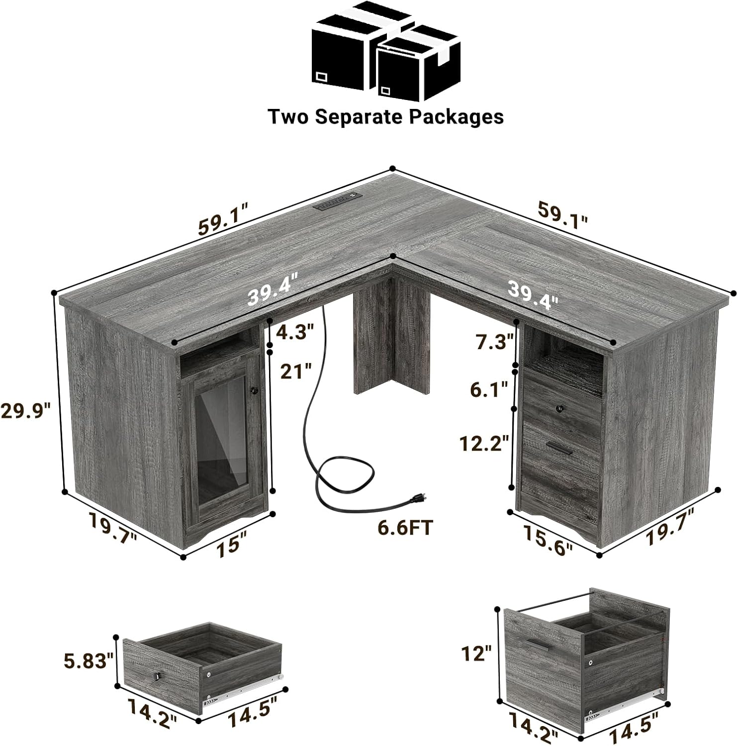 • 🔌【 Power Outlets & USB Charging Ports 】The l-shaped desk with drawer is built in 4 power outlets and 2 USB ports. It provides extra power support for your computer, laptop, printer, scanner, phone, headset, gaming gear and other electric equipment with fast charging. You do not need to juggle between plugging your phone, diffuseor fan into your computer any more, this allows for all to be plugged in at once, which provides a great convenience to your life when you are working or playing games.