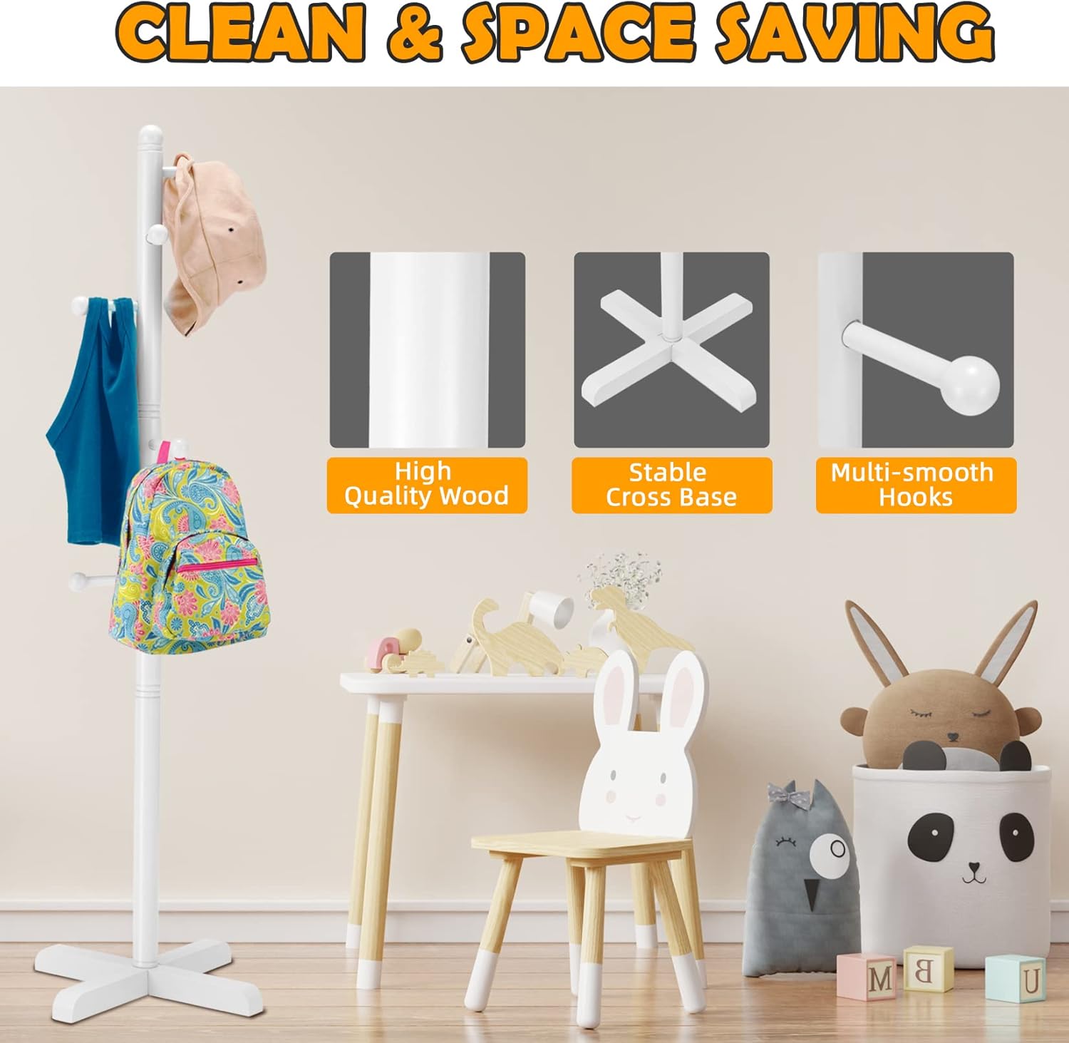 • 【Premium Material】: This coat rack is made of high-quality New Zealand pine wood, which has a smooth appearance and protects your hands. Solid construction is durable. Hand-painted, environmentally friendly and odorless.