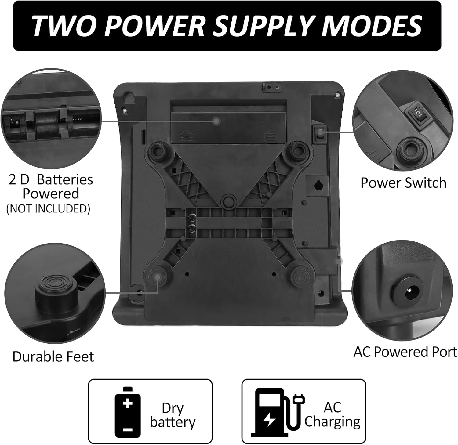 • TWO POWER SUPPLY MODES: AC charging powered (AC adapter included) or dry battery powered(NOT included). You can operate this digital price scale cordless for outdoor use, or with an AC plug for indoor use