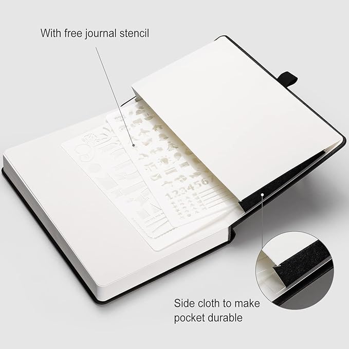 • Humanized Design: Numbered pages, index content pages, and 2 bookmarks help you find important content faster. Journal stencil included, a perfect tool for bullet journaling. Back inner pocket holds notes, business cards, small gadgets, etc. Closes with an elastic band and has a pen holder loop for any pen
