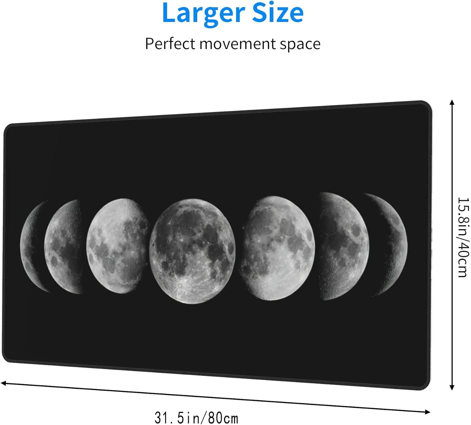 Desk Mat,Celestial Moon Phases Extended Gaming Mouse Pad for Office Work & Game,Computer Keyboard Mouse Mat Desk Non-Slip Rubber Base Large Mousepad with Stitched Edges, 31.5x15.7inch