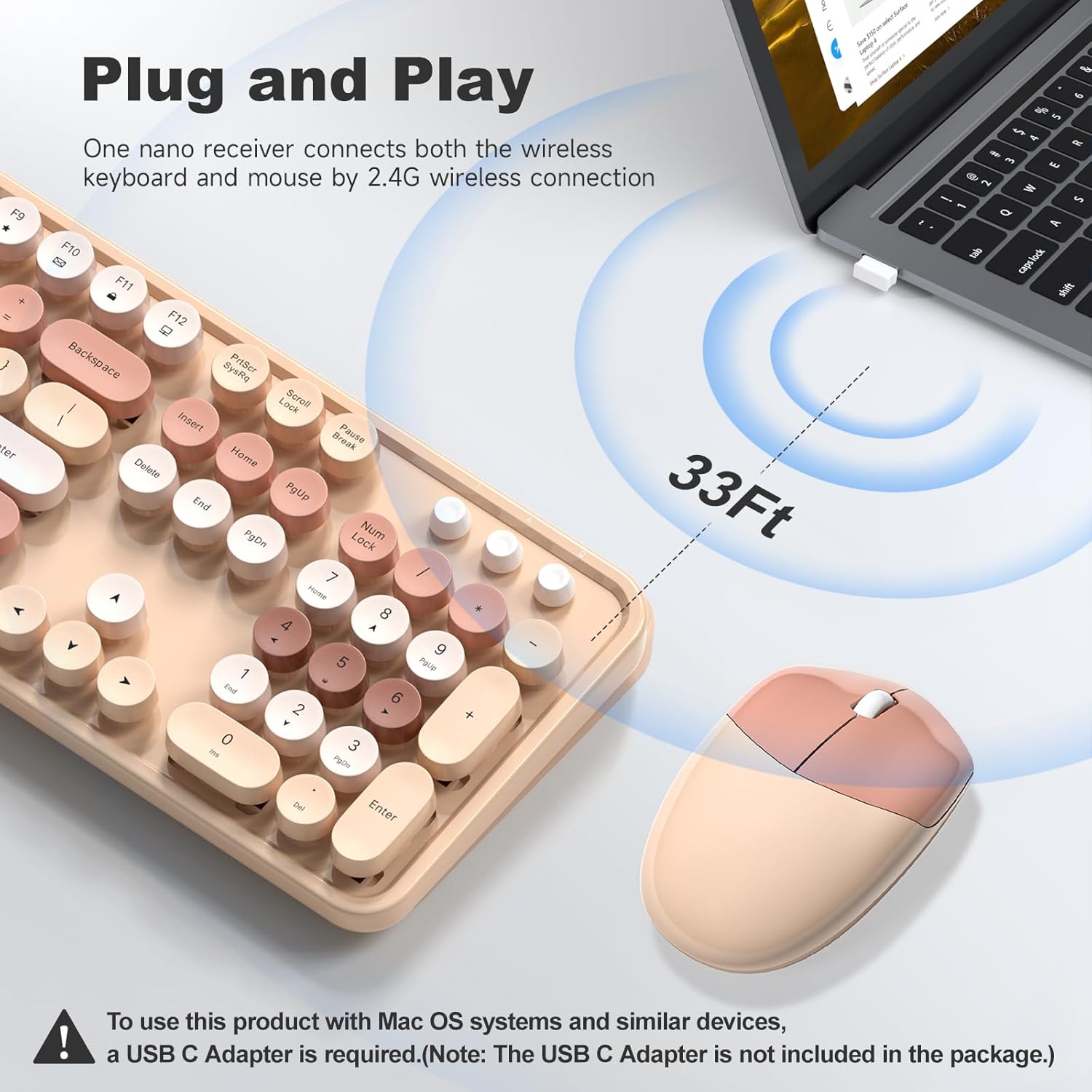 • 【Wide Combination of Full-Size Wireless Keyboard and Mouse】The colorful keyboard with numeric keypad and mouse adds vitality to your desktop. Improve work efficiency. Works with your PC, desktop, laptop.As for devices with a C port, you'll need to get a C to A adapter (not included) and purchase it yourself. Connect the adapter to the device with the C port.