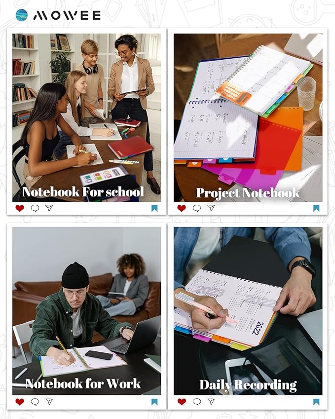 • NOTEBOOK WITH POCKET DIVIDERS: 5 movable pocket dividers perfectly hold 11" x 8-1/2" papers. Multi-colored dividers and practical index tabs suitable for pages classifying, quick reach for the specific part. 10 extra tabs for replacement