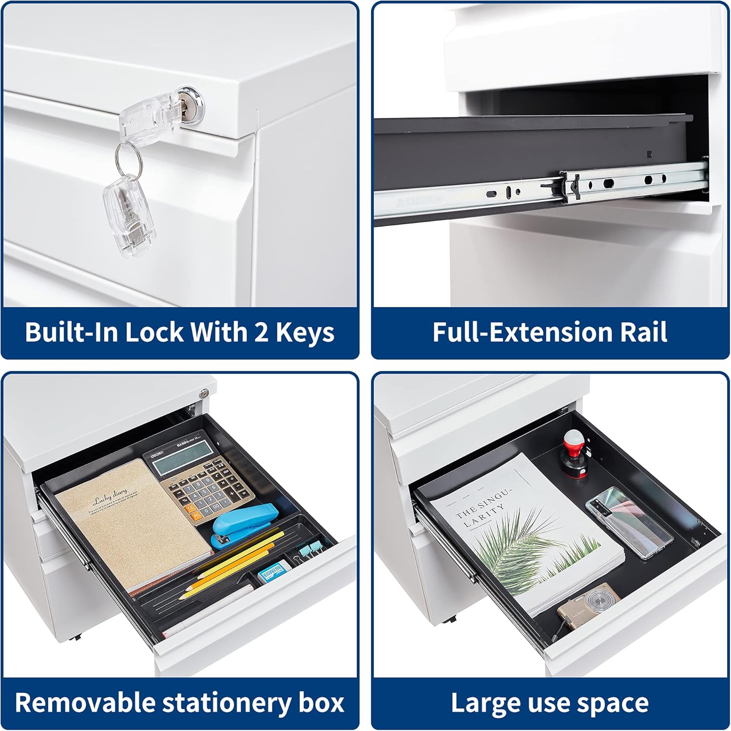 • Optimize your work space: The file cabinet adopts the structure of 3 drawers, 2+1 space combination. Small and large file cabinets can be organized and stored, making your office space more comfortable. Chain mechanism: