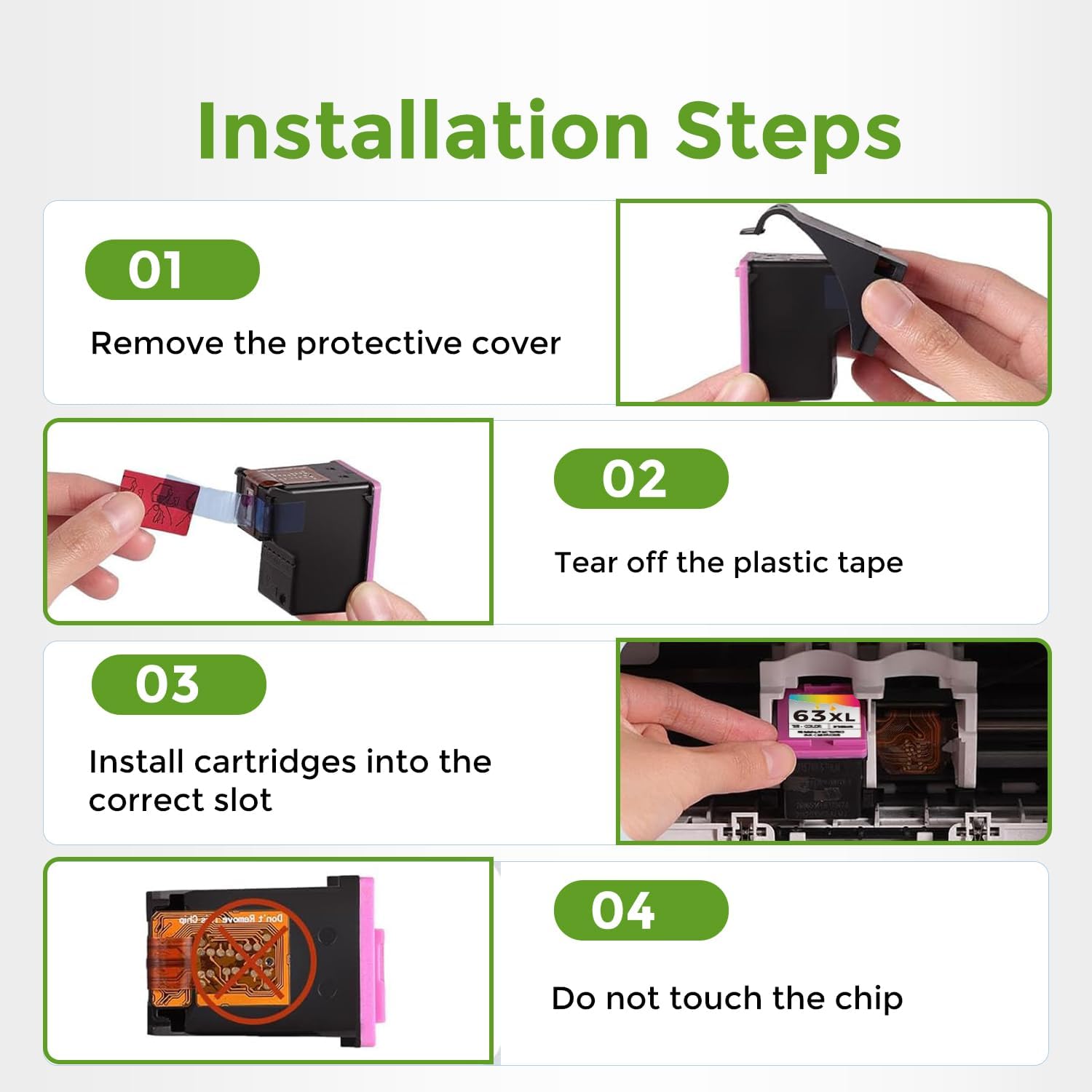 • Upgraded Chips: Each 63 xl black ink cartridge uses the latest enhanced chip technology to ensure efficient compatibility and fast identification with the printer, while ensuring that the printer is free from damage and hassle.