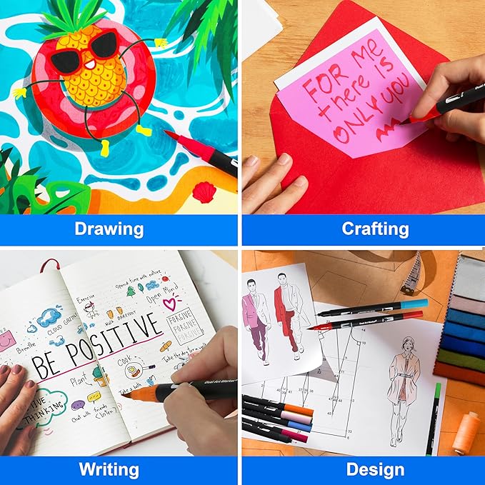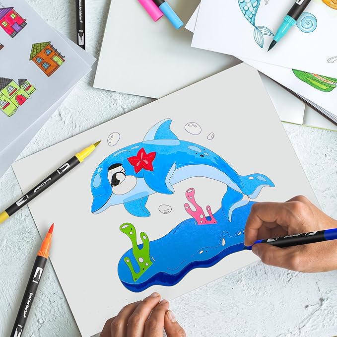 • 🎨Dual Brush Marker Pens: The coloring markers have a dual tip design with a 1-2mm brush tip and a 0.4mm fine tip, allowing you to create medium or bold strokes by varying the pressure of the brush, while experiencing fine strokes with the fine tip.The 0.4mm fine tip markers are great for sketching, tracing, and detailing, while the 1-2mm brush tip markers are great for giving large areas of color. The dual-head design fully meets your needs in different situations.