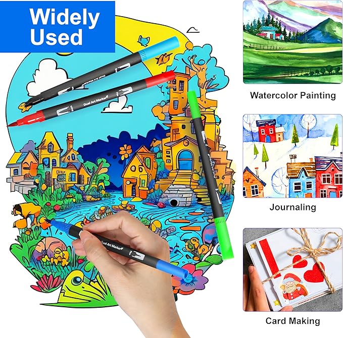 • 🎨120 Colored Markers: Dual tip markers are made with 120 commonly used colors to ensure that there will be no repetition in every application, thus achieving outstanding color effects. During your creative process, these pens will show their full charm, powerfully stimulating your imagination and creativity, enabling you to create even more wonderful works.