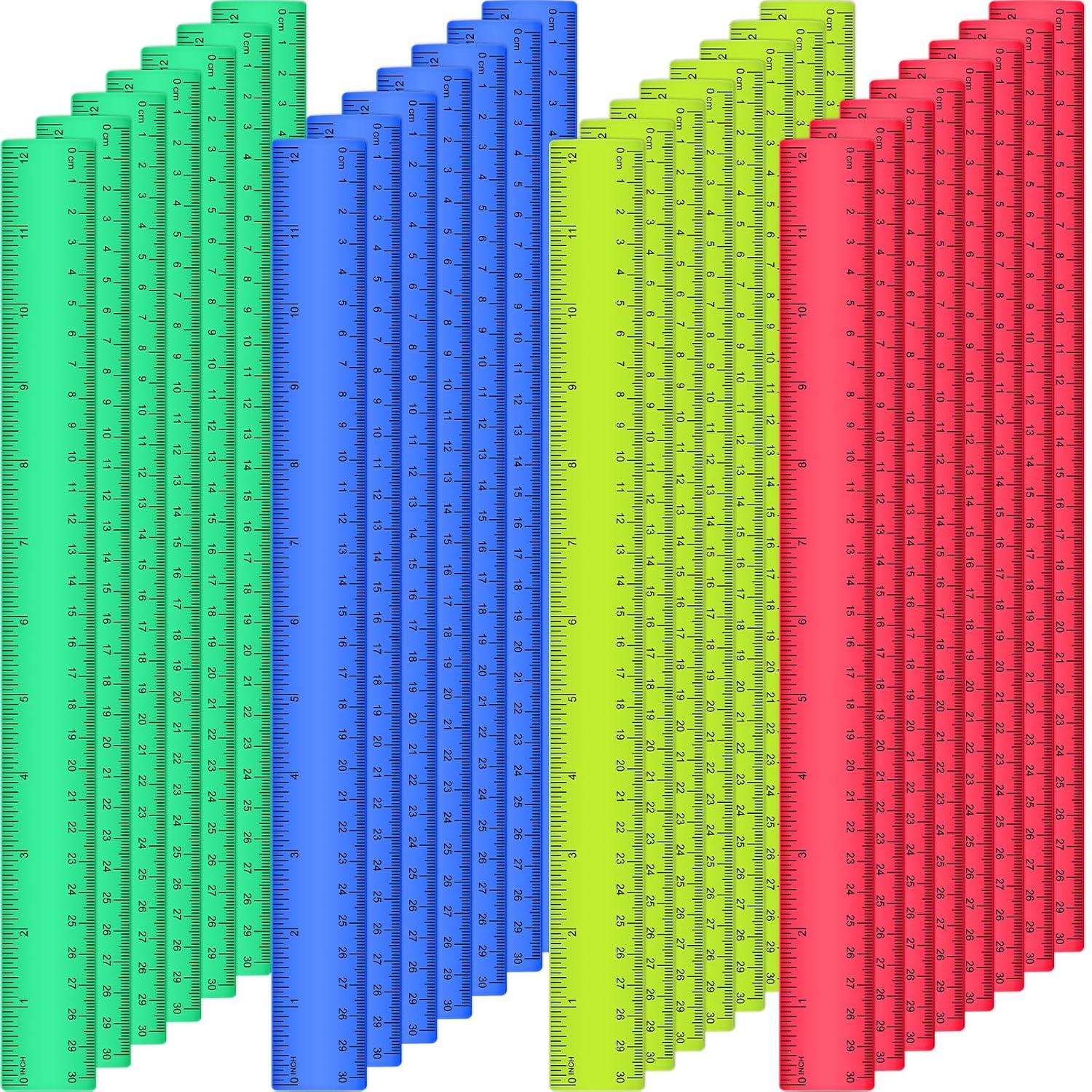 Zonon 30 Pcs 12 Inch Plastic Ruler Assorted Colors Ruler Bulk with Centimeters Millimeter and Inches Rulers First Day of School Gift for Kids School Classroom Office Supplies(Elegant Color,Plastic)