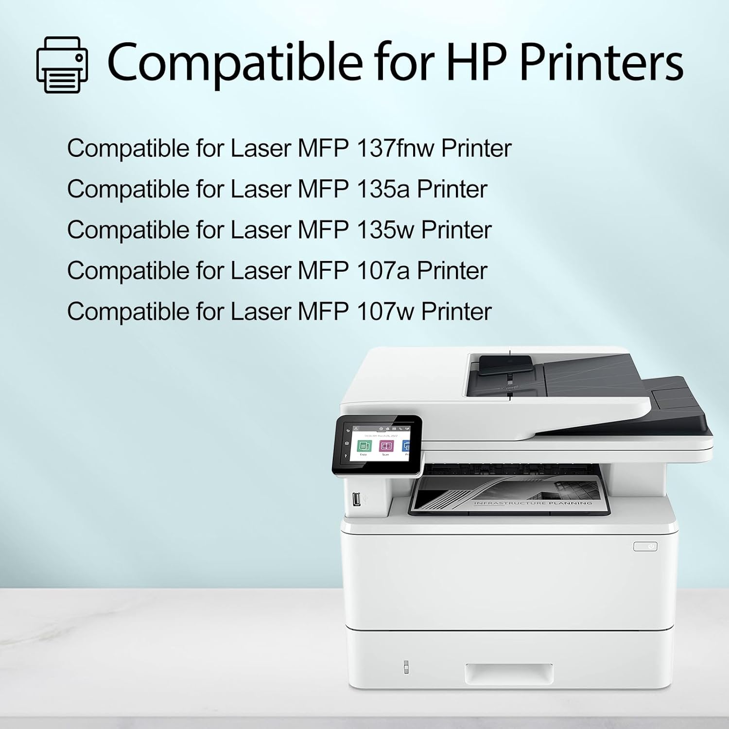 • Compatible for HP Printers (Made in North America) : Laser MFP 137fnw / Laser MFP 135a / Laser MFP 135w / Laser MFP 107a / Laser MFP 107w / Laser MFP137fwg / Laser MFP 135ag / 135r / 135wg / Laser 107r Printer