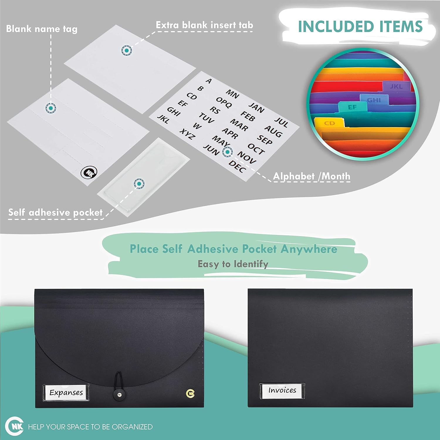 • [High Quality Material] Our 13 Pocket Expanding File Folder is made from quality PP Plastic material, Acid-Free, PVC-Free to ensure durability, water resistant and long lasting cover from every uses.